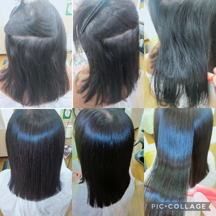 ヘナ・香草カラー・マニキュアをされているお客様の縮毛矯正です。